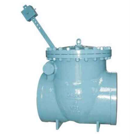 2、重錘通過加長桿和撥叉作用于銷軸,用以平衡和搖桿的重力矩,防止水錘現(xiàn)象的發(fā)生。當(dāng)介質(zhì)正向流動時(shí),有助于打開閥門,并在運(yùn)行中保持閥門的平穩(wěn)和減少振動。