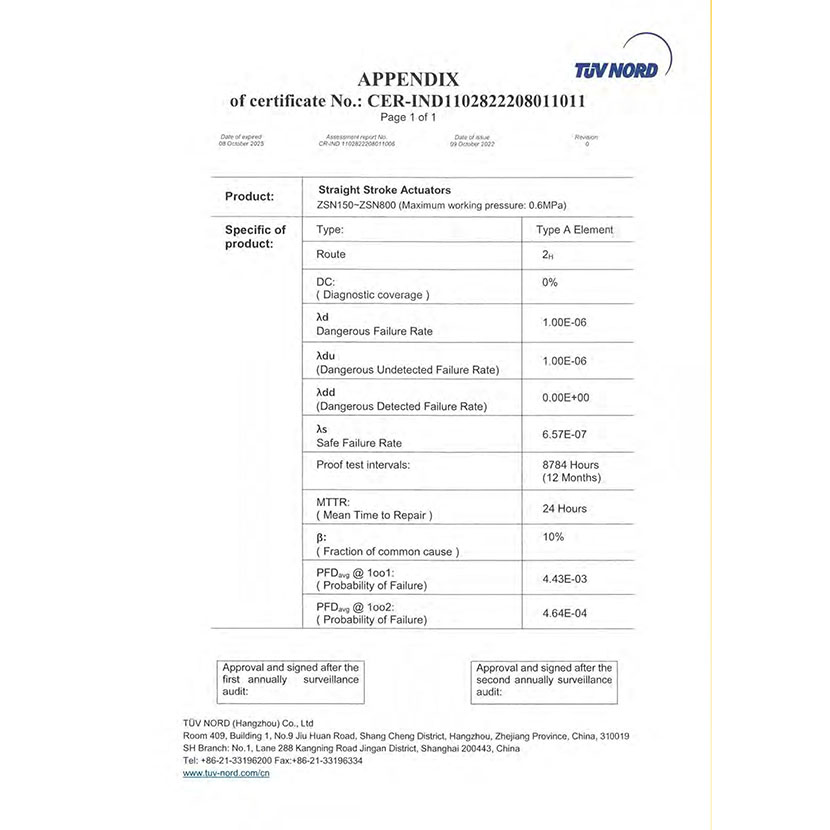直行程執(zhí)行器 SIL證書 2